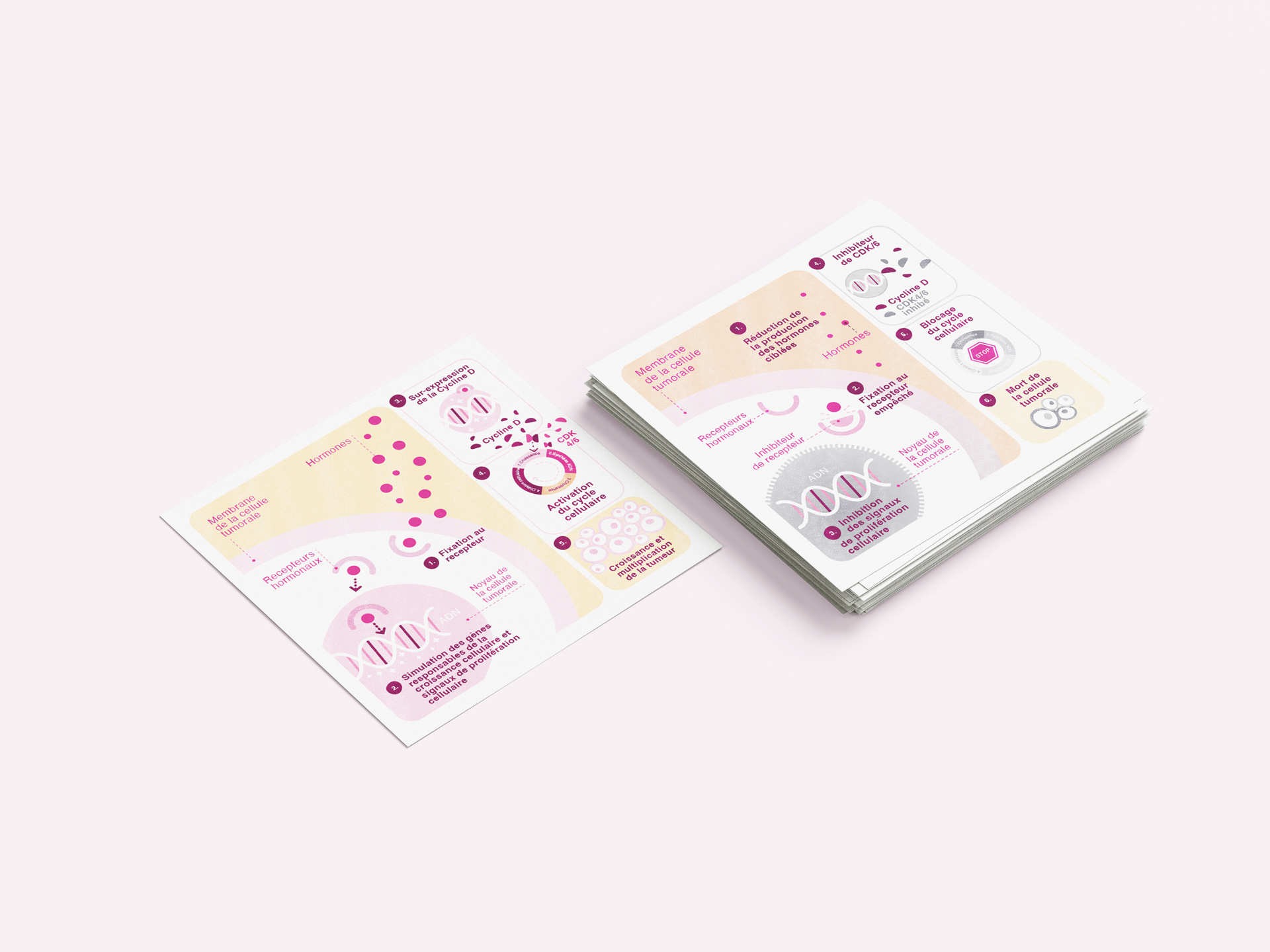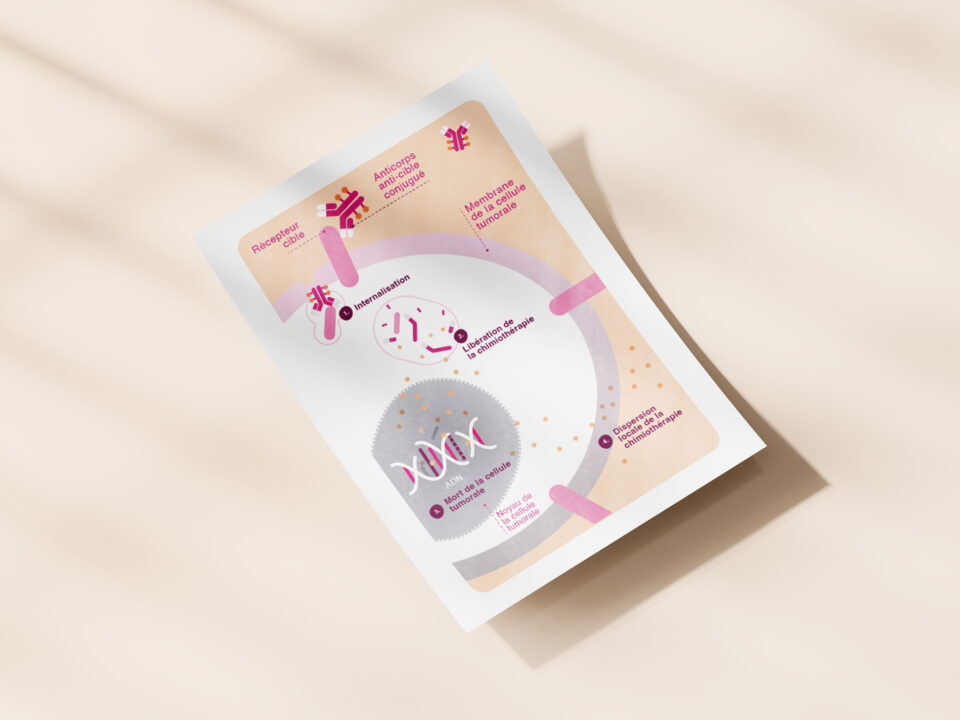 In 2023, I developed a series of scientific illustrations to accompany a patient brochure dedicated to metastatic breast cancer.